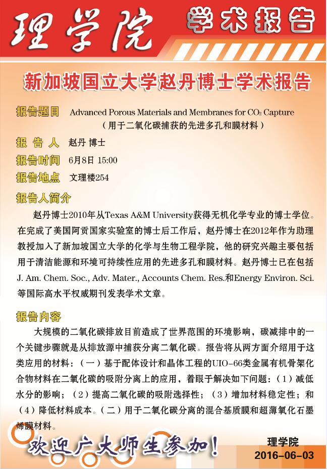 [学术报告]用于二氧化碳捕获的先进多孔和膜材料