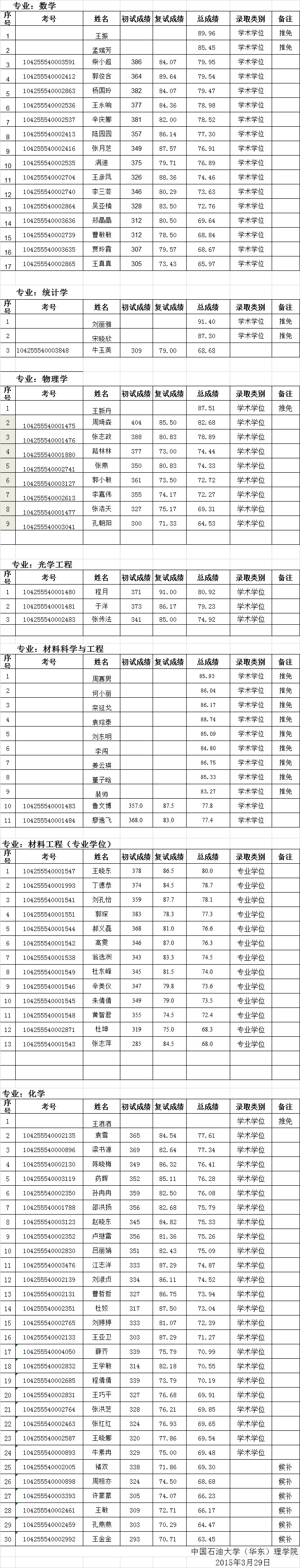 太阳成集团tyc97282015级硕士研究生拟录取名单公示