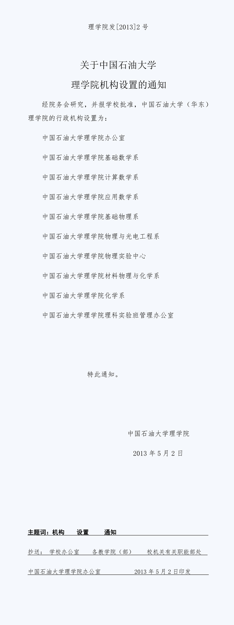 关于中国石油大学太阳成集团tyc9728机构设置的通知