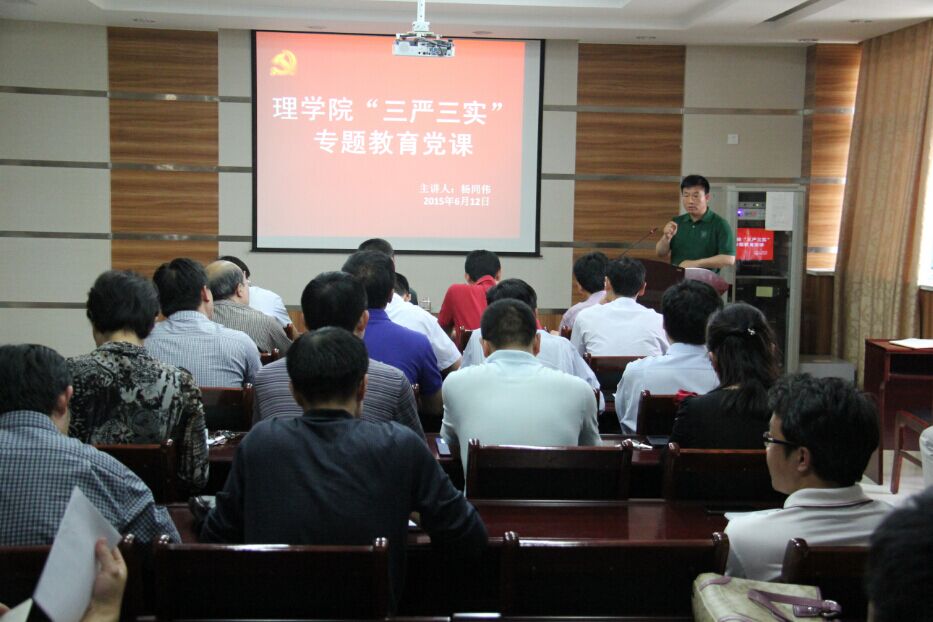 6月12日下午,公司党委书记杨同伟面向全院干部开讲“三严三实”专题教育党课,学院领导班子成员,全院科级以上干部,系正、副主任参加党课。 杨同伟首先从“三严三实”专题教育的意义讲起,重点讲了“三严三实”是改革、发展、稳定的需要,是党的作风建设的重要措施,是党的群众路线教育实践活动的延续,也是干部队伍建设的需要。 杨同伟还概括讲了“三严三实”的内涵。第一方面:“严”。严以修身重在理想信念、提升道德境界,坚持道路、理论、制度自信(市场经济与社会主义制度),遵从社会道德、职业道德、家庭道德。严以用权重在分清公与私,明确权与法的界限,严禁公权私用,法内用权,依法办事。严以律己重在存敬畏、需慎独、遵纪守法,对信仰、对法纪、对组织、对群众有敬畏之心。第二方面:“实”。谋事要实就是要联系实际,联系群众,从实际出发谋划事业和工作,知实情,接地气。创业要实就是敢于担当,务求实绩,对党尽责,对国奉献,为民分忧,树立正确的政绩观,多做打基础,利长远的事情。做人要实就是要忠诚老实,公道正派,工作、生活胸怀坦荡,言行一致,表里如一。 杨同伟还对全院干部提出了三点要求:第一,要提高认识,顺势而为。认真领会三严三实专题教育活动的精神,把握实质。结合三严三实专题教育,联系自身实际和工作实际,将认识统一到中央和教育部精神,统一到学校的要求上来。第二,担责用权上要严。对照三严三实要求,修身、克己,增强干部的承载力和驾驭能力。从学校、学院和本单位发展出发,主动加压担责,增强责任担当,多做打基础、利长远的事。在即将到来的本科教学评估工作中,以评促建,将团队建设、实验室建设及合理布局、专业建设、13版培养方案认真梳理,做深做细。第三,服务师生上做实。强化服务意识,创新服务方式,主动增加服务内容,提高服务水平,最大限度满足师生愿望。