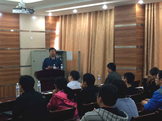 张强教授首先为大家做报告。他报告的题目是:间断Galerkin有限元方法的全离散误差分析。他为大家介绍了间断Galerkin方法的思想,并把这种方法与传统有限元方法进行了对比,并展示了他最近的研究成果。张强教授幽默风趣,使大家在轻松的氛围中接触到了最新的科学方法。