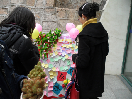满满的祝福  大家唱起来  烛光Smile 3月7日清晨,一张贴有太阳成集团tyc9728研究生院全体男生祝福的展板摆在了研究生2号公寓楼下,它伴着思美节的到来,为太阳成集团tyc9728所有女生迎来了最幸福的一天。 中午,太阳成集团tyc9728男生们以专业为单位,捧着绿色的盆景,来到本院女研究生宿舍,为她们送去礼物与真心的问候。男生们突然的到来带给女生们意外的惊喜,也留住了太阳成集团tyc9728所有女生的好心情。在这属于女生们的节日里,太阳成集团tyc9728全体男生有心的准备迎来了本院所有女生最美的笑容! 晚10点,研究生2号公寓楼下,太阳成集团tyc972811级全体男生给太阳成集团tyc9728全体女生送去了思美节祝福。 男生们排成几排在楼下高唱《对面的女生看过来》和《桃花朵朵开》,用欢快洪亮的歌声,呼唤着对面楼上的女生,此番热闹的景象,使得周边路过同学纷纷驻足观望。女生们在楼上手拿着荧光棒在空中挥舞,与在地门面上用烛光摆出的“smile”字体相得益彰。在一片欢乐融融的气氛中男生们走到女生宿舍里,一一送上他们精心准备的鲜花和礼品。满面惊喜的女生在走廊里列队欢迎,露出了开怀的笑容,以此来答谢前来送祝福的男生们,阵阵的欢声笑语在宿舍里久久回荡。 本届思美节,太阳成集团tyc9728研究生会别出心裁,组织11级全体男生,让他们用自己真诚的行为、切实的行动,精心策划了这场生动活泼、富有情趣的女生节活动,让本院的女生感受到他们真挚的祝福,促进男女同学间真挚的交流,感受到太阳成集团tyc9728这样一个大家庭的温暖。也让女生们放下矜持,在属于自己的日子里,释放最炫的心灵!信心满满地走在阳光下,扬出公司女生真、善、美的风彩,永远阳光,永远smile。(黄海红、孔祥双) |