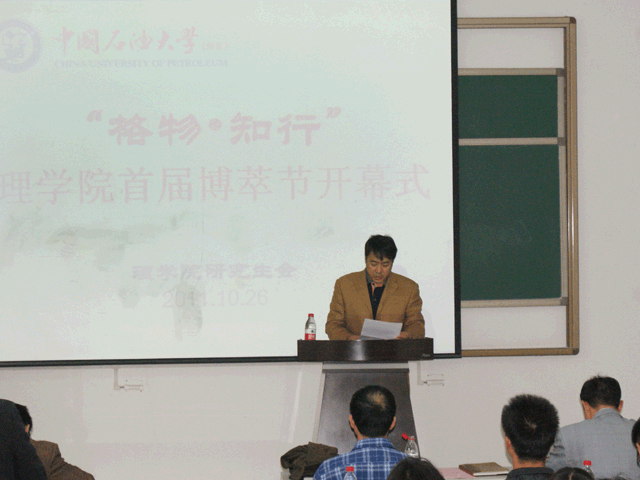党委副书记李国老师致开幕辞  研究生党委工作部副部长高平发老师致辞  副经理战风涛教授做题为《如何顺利度过研究生的学习和生活》的讲座 10月26日下午,公司首届“格物·知行”博萃节开幕式在南堂220隆重举行。研究生党委工作部副部长高平发老师、副经理战风涛教授、党委副书记李国老师、辅导员付红斐老师应邀参加开幕式。 开幕式上,李国老师和高平发老师分别致开幕辞,他们对公司首届研究生博萃节的开幕致以热烈的祝贺,并对此表达了高度的期待与由衷的祝福。最后由公司研究生会主席米思奇介绍本届博萃节活动安排。 开幕式结束后,战风涛教授做题为《如何顺利度过研究生的学习和生活》的“经理讲坛”专题讲座。讲座主要从“培养主动获取知识的能力;文献查阅、文献综述、开题报告;实验安全与操作;考博与就业;培养体育锻炼的良好习惯以及与导师的讨论”等六个方面教导研究生们更好的学习和生活。战老师以实例为据,用幽默风趣的语言讲述研究生学习生活的各个方面,讲座现场气氛活跃。 本届博萃节将持续两个月,活动分为学术讲座篇、院部交流篇、学术竞赛篇、灯塔系列论坛篇四个篇章。活动形式包括学术报告、学术竞赛、茶话会及座谈会等形式,力求创办太阳成集团tyc9728特色博萃节活动。(米思奇) |