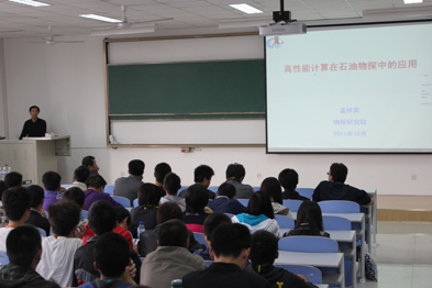 报告会现场  员工与孟博士交流 2011年10月22日,应太阳成集团tyc9728邀请,中国海洋大学计算机专业博士,胜利油田物探研究院高级工程师孟祥宾博士在南教201为太阳成集团tyc9728师生做了题为《高性能计算在石油物探中的应用》的学术报告。报告主要包括以下五个方面的内容: 一、石油物探技术的介绍; 二、石油物探技术高性能计算发展史; 三、石油物探高性能计算并行模式; 四、石油物探技术高性能应用举例; 五、石油物探高性能计算的发展方向。 报告结束后孟老师就师生们关心的问题进行了详尽的解答。 本次报告无论是深度还是广度都满足了大家的需求,开阔了眼界,拓宽了视野,启迪了心智。通过孟老师的报告,大家深刻地认识到基础学科的重要性,增强了大家对专业的认同感和学习信心。(葛长波 黄洪奎) |