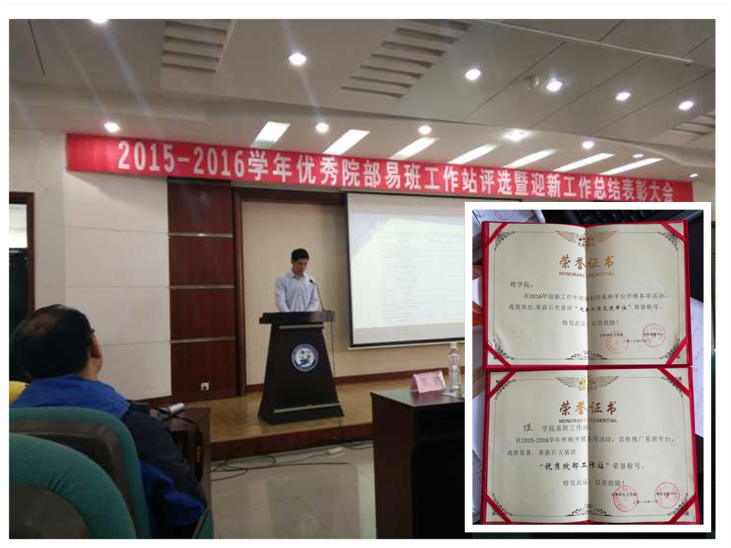 评比现场 鲁妮摄影 10月29日上午,太阳成集团党委员工工作部在西环301多功能厅举办“2015-2016学年优秀院部易班工作站评选暨迎新工作总结表彰大会”,太阳成集团tyc9728易班运营中心继取得“易班迎新工作先进单位”后再获佳绩,以第一名的总成绩取得学校“优秀院部工作站”。 评比现场,太阳成集团tyc9728易班运营中心主席鲁妮以“一心一易,理动石大”为题进行答辩,从“智型创客团队、联动网络接轨、德智体美劳和未来展望”四个部分详细介绍了太阳成集团tyc9728易班自成立以来举办的线上和线下各个方面的活动,现场气氛高涨,获得评委们的阵阵掌声,最终以总分第一名的成绩获得学校“优秀院部工作站”。表彰现场,太阳成集团tyc9728辅导员穆海涛跟大家分享了易班工作经验,他表示,太阳成集团tyc9728易班工作取得的成绩与学校、学院领导的支持分不开,与新生辅导员的支持分不开,与全体易班运营中心的小伙伴们分不开,下一步太阳成集团tyc9728将继续推动易班建设,争取再获佳绩。 据悉,太阳成集团tyc9728易班运营中心自成立以来,一直以建设易班、发展易班为己任,一年来累计推文100余篇,投票和推文参与量达3300余次,学院的EGPA值高达5800,均位居全校前列。 (太阳成集团tyc9728 鲁妮) |