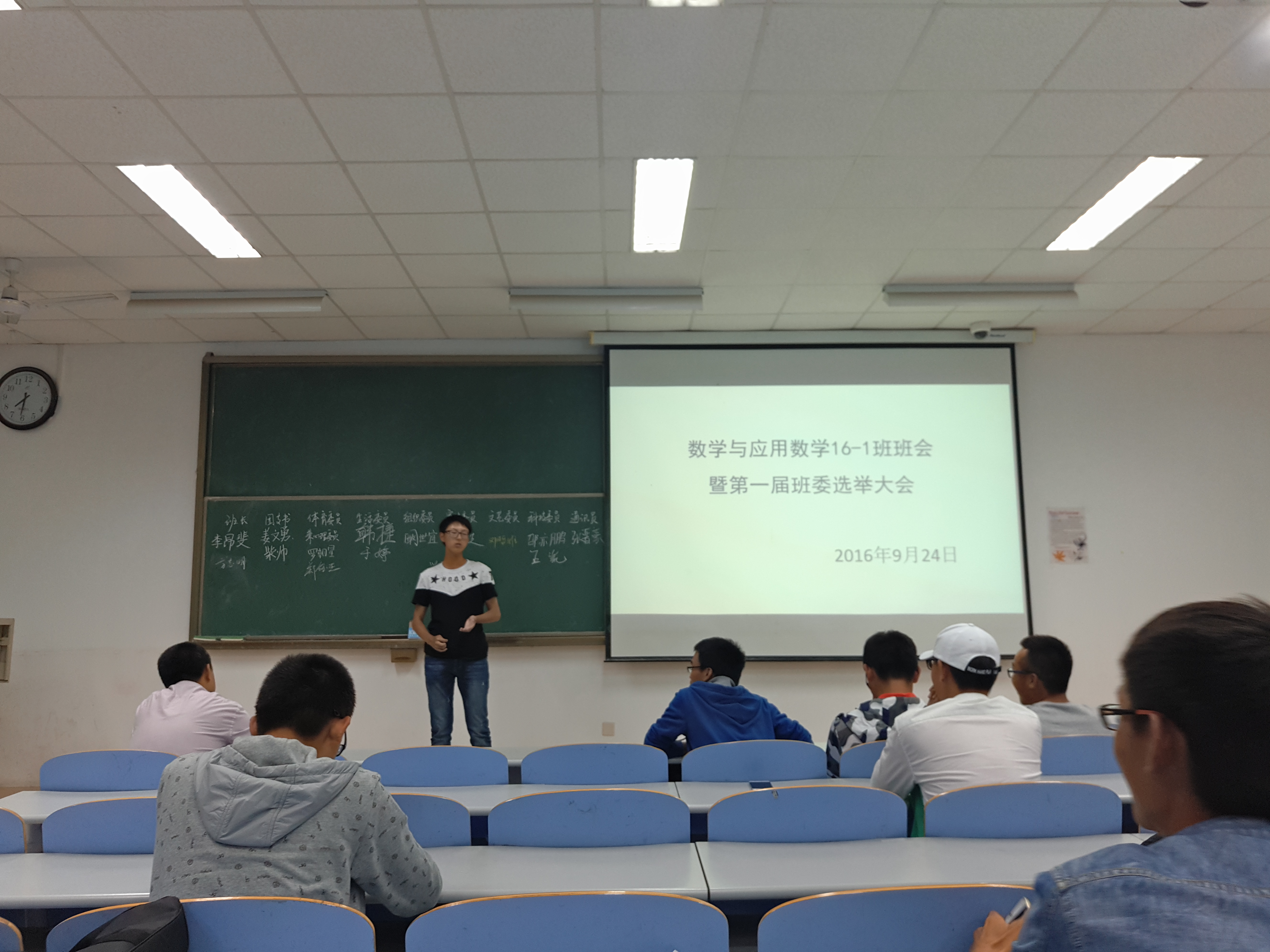 (竞选者演讲 陈楼摄) 为了密切班级成员的联系,共同建设先进班级体。9月24日由代理班主任陈楼、陈嫣然组织的班委选举大会在南教109教室开展。本次班会特别邀请了班主任陈永刚。 晚上七时,代理班主任陈楼、陈嫣然和班主任陈永刚向大家生动具体地介绍了以班长、团支书为中心的班委会班级管理方式。随后,各位同学针对自己的想法进行班委的报名选举。其中,班长、团支书、体育委员、生活委员等职位的竞争较为激烈。在班委的竞选过程中,竞选同学表达了自己对于班级建设目标的决心和对为同学服务的愿望。经公开选举,最终选定李昂斐为班长,姜文勇为团支书等十个人组成的数学1601班第一届班委会。这次班会是新生入校以来第一次正式开展的班会活动,会上,陈永刚说“大家就像一个点,只有我们相互合作才能构成一条线,才能形成一个面。” 班会的最后,代理班主任陈楼、陈嫣然向各位班委分享了班级管理经验和一些班级管理工作出现的问题及应对方法。 这次班会的圆满结束,为和谐班级体的建设提供了良好的开端,同时也为新生班级建设先进班级体和优良学风班的目标迈出了第一步。 (太阳成集团tyc9728 崔明芝 陈楼) (审核 李珂) |