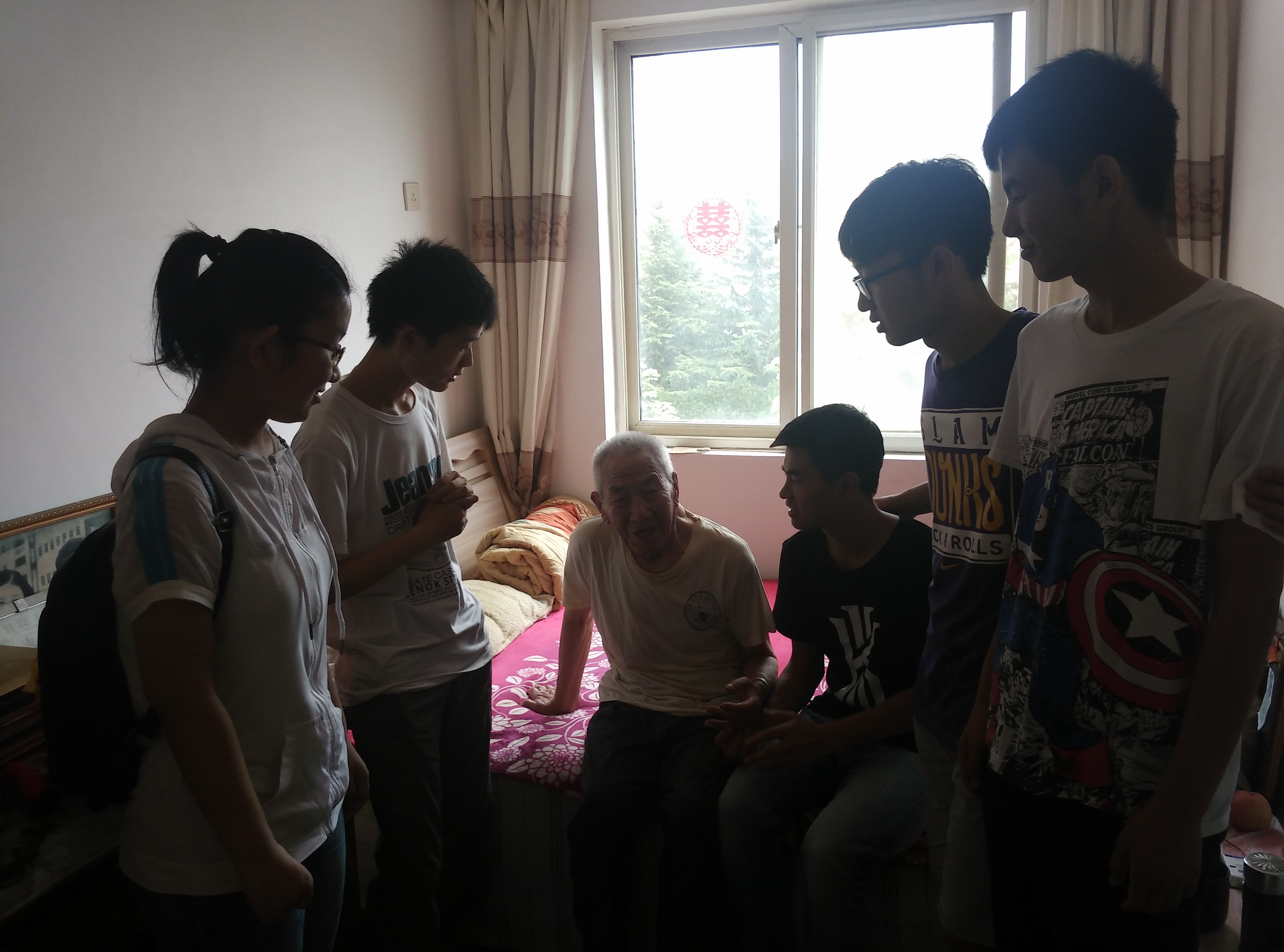 (拜访金风仁 常津源摄) 7月20日,燃梦实践队全体成员拜访了参加过解放战争和抗美援朝的金风仁老先生。 尽管已经有86岁的高龄,金风仁老先生依然思路清晰,他向实践队详细讲述了自己参加过的战斗以及战争中的激烈场面。老人饱含深情的讲述,让大家在了解斗争历史的同时也体会到了不屈不饶的革命精神。当实践队员问及老人16岁跟随部队离开家乡时是否想过可能再也回不到家乡的时候,老人笑了笑,说:“我只知道要跟着共产党解放中国”。 由于金风仁老先生身体状况的关系,实践队并未在他家中停留过长时间。临走前,实践队队员问老人对国家,对党的未来有什么期盼时,老人说:“希望党越来越清廉,国家永远不要战争。” 此次活动获得了青岛市黄岛区区委组织部和长江路办事处的支持。从金风仁老先生家中出来以后,实践队员感慨颇深,老人代表的中国共产党的牺牲精神深深感染了他们。实践队队员纷纷表示:他们要继承并发扬这种精神,并应用于今后的工作和学习中。 (太阳成集团tyc9728 常津源) |