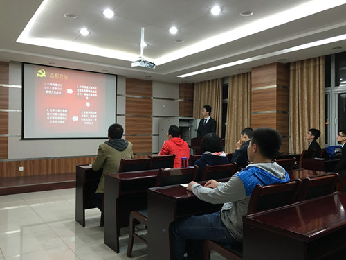 (答辩现场 刘子尧) 4月4日晚7点,理科实验班党员拟发展对象答辩在文理楼254办公室召开。会议由党支部书记杜秋宁主持,辅导员刘威以及理科实验班员工党支部部分党员参加。 理科实验班2013级吕何、徐正晓、姜建峰和2014级刘宏言、康雅等共9名同学参加此次答辩。他们分别从思想政治、学习成绩、社会工作、日常表现和群众基础等方面进行表述,并结合实际情况,表明了自己对党性认识。辅导员刘威、党支部书记杜秋宁及在场所有党员对就答辩的内容对答辩同学进行提问。吕何就党员应该具备的素质这个问题指出,一个合格的员工党员,除了要在学习成绩上突出之外,也要在其他能力上做到优秀。“我参加了很多活动,通过这些活动使我提高了各方面能力。”吕何报告时说。徐正晓说:“践行社会主义核心价值观,是当代老员工的基本要求”。 本次答辩是支部深化落实“五答辩”制度的重要举措,全面考察了入党积极分子的平时表现,以及他们对党的认识。通过这类活动,既能严把“质量关”,发现并吸收先进党员加入党组织中来,也能够增强员工党员的思想政治素质,促使他们深刻思考,更好更快的成长起来。 (太阳成集团tyc9728 张沫) |