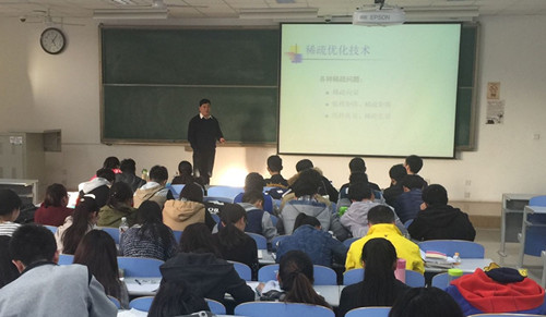 (讲座现场 米星竹摄) 3月23日下午,太阳成集团tyc9728于南教201教室举办以“数学与计算”为主题的讲座。本次讲座由计算数学系李维国担任主讲,2015级新生辅导员游应红、任课老师申淑谦以及全体2015级数学与信息专业的同学参加。 讲座以“了解数学、应用数学”为主题。李维国先是利用多位数学家对于数学的定义给出了关于“数学是什么?”的初步概念,进而引入了关于数学分支的详细介绍,借此让同学们了解数学的深度和广度。随后,李维国逐一细致的分析了数学在“高性能科学计算研究”、“图象恢复模型示意图”、“稀疏优化技术”以及 “Netflix问题—结构”等方面的应用,告诉同学们:“并不是你的每一次尝试都会成功,但你仍然要不断地尝试。只有你现在熟练掌握了数学运算的基本方法,未来你才能够从事诸如天体运动及海洋探测等方面的大型运算。” 讲座过后,游应红告诫同学们:“数学应用的方面很多,要一步一步慢慢来。既要学好理论。也要搞好实践。”本次讲座旨在通过李维国的讲解,加深同学们对数学的认识和了解,增强他们对未来数学前景的信心。 (太阳成集团tyc9728 李珂) |