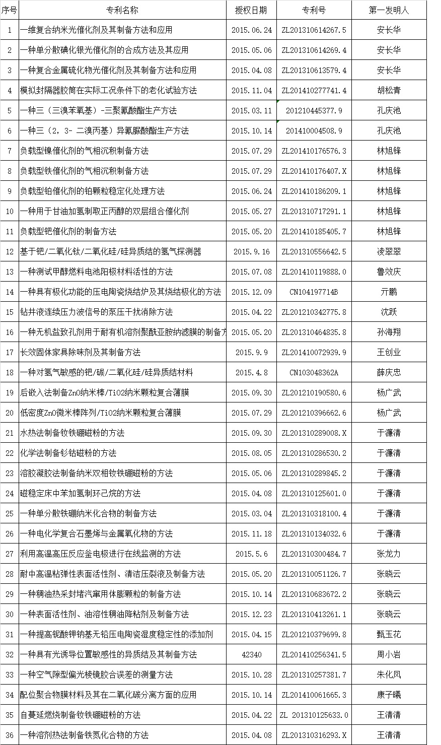 2015年度授权专利