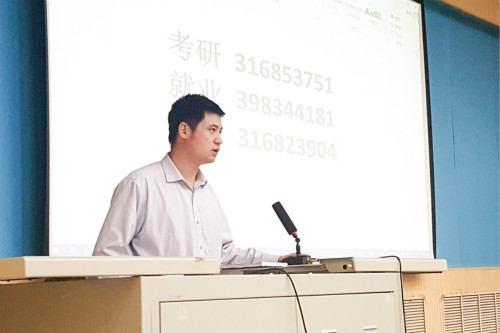 会上,郝海晓通报了今年13级的考研情况,对今年全体同学面临的新形势进行分析,要求全体考研同学认清形势,合理调控自己的报考目标,争取更大的成功。