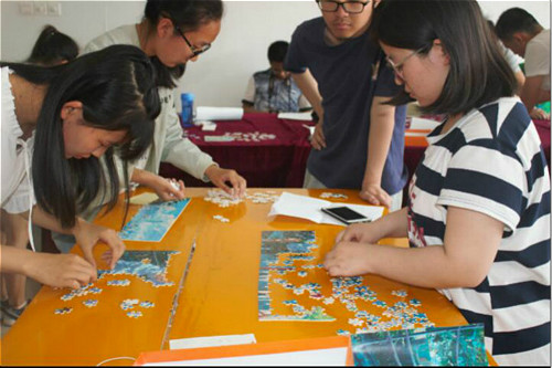 比赛分为初赛与决赛,初赛采取在APP上拼图的形式,选取时间较短的队伍晋级。初赛,同学们动用自己的“火眼金睛”,争分夺秒的与拼图“做斗争”,现场气氛持续热烈。在经过6月7日至9日的为期三天的初赛后,6月10日早上8点半,决赛于18号楼6楼活动室展开。决赛中,晋级的30支队伍面临着一个半小时五百块拼图的挑战。参赛人员开动智慧,或由反面开始拼,或从四周开始拼,采取各种方法,团结协作,以求在最短的时间完成拼图。经过激烈的比拼,比赛结果也很快出炉,来自饿喵队的同学以52分21秒的好成绩取得了比赛的冠军。6月15日晚七点,颁奖仪式于易班发展中心举行。