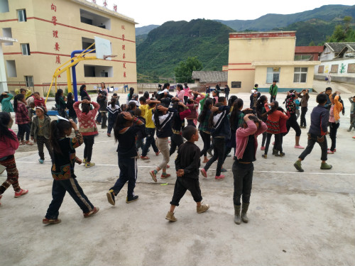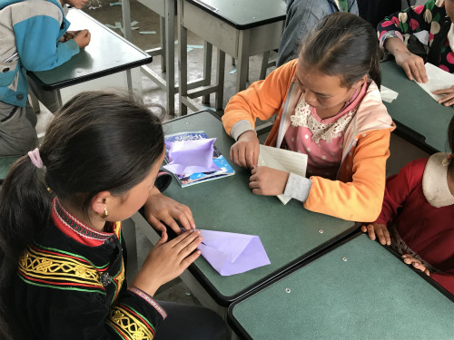 井叶特西乡小学的支教老师们在得知九寨沟的地震灾情后,第一时间计划和安排了地震逃生演习和折纸鹤祈福的课程。从来学校的路上,滑坡的残余随处可见,很多突兀的山体岩石更是触目惊心,有随时砸下来的危险,实践队员和孩子们对于灾害的恶劣与人在灾害面前的脆弱都深有体会。在难遇上青天的蜀道,队员们意识到要加强对小员工的安全保护意识与方法的普及。