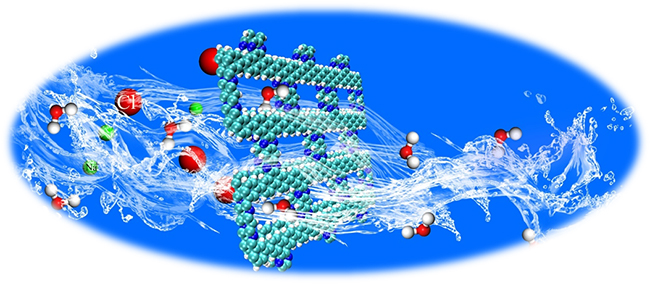 在海水淡化应用中,当前的反渗透膜能够实现较好地排盐,但膜的厚度较大,大大降低了海水的分离效率且能耗较高。近年来研究发现原子层厚度的纳米多孔膜能够极大地提高水流,通过控制亚纳米尺寸的孔径可以实现有效排盐。但如何实现高密度、尺寸均匀的亚纳米孔制备成为目前亟待解决的问题。2017年1月,新加坡国立大学Loh教授课题组成功合成two-dimensional conjugated aromatic polymer (2D-CAP)膜,该膜具有高密度、规则排列的亚纳米孔,在海水淡化中展现出潜在优势。两课题组通过合作,采用分子动力学模拟方法研究了该2D-CAP多孔膜的盐水分离性能。结果表明2D-CAP膜具有优异的排盐能力并展现出超高的水渗透率,相比目前的商业反渗透膜提高了3个数量级,是已有报道具有最好排盐性能的单层MoS2膜的3倍。该科研成果为下一代脱盐膜材料提供了一种高性能超薄膜。Nanoscale审稿人对该成果给予高度评价,认为“与目前的反渗透技术相比,这项研究成果有可能发展新的海水过滤方法,相信其提供的高密度亚纳米孔,将在分离和过滤技术方面激发一系列潜在的新应用。