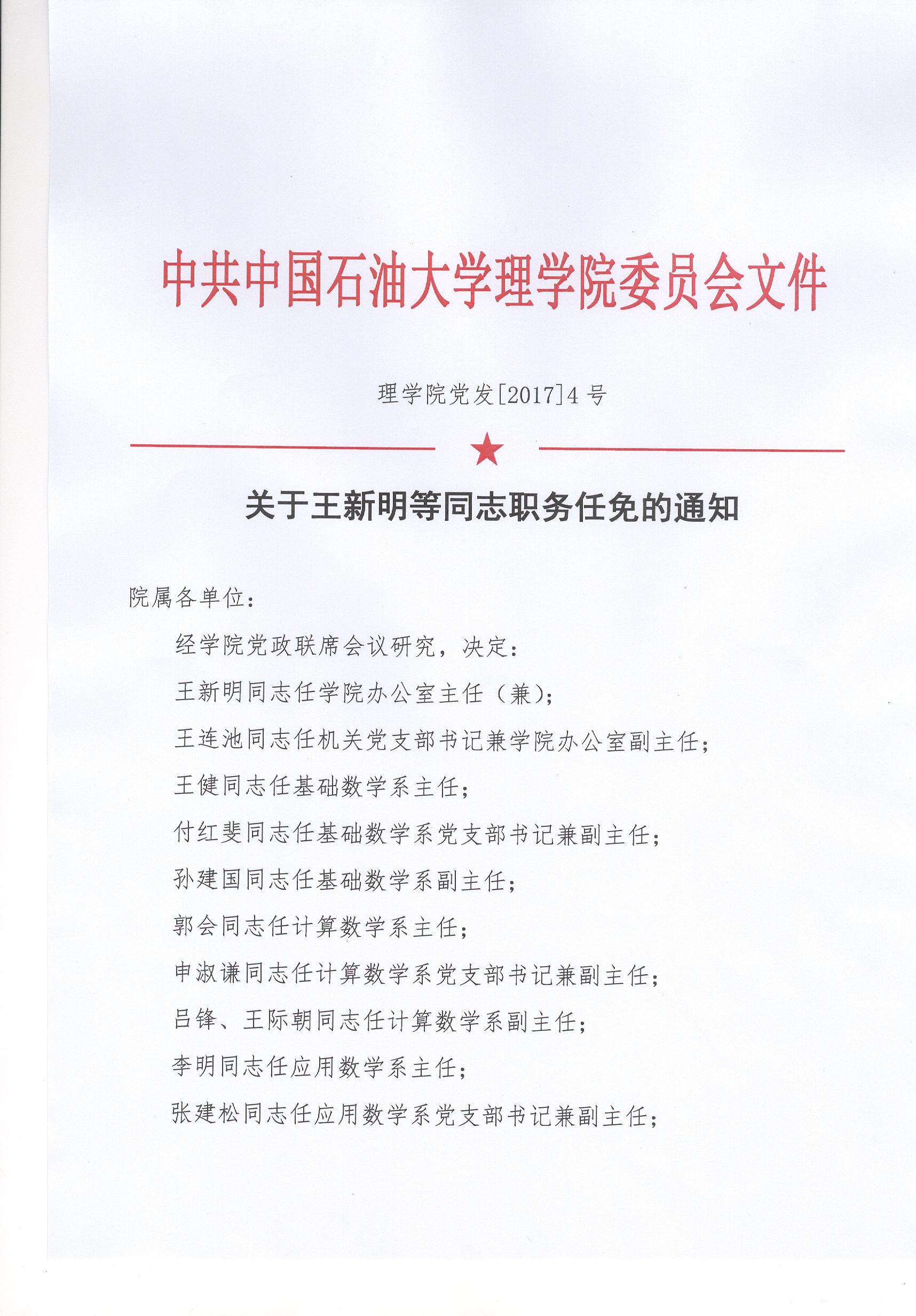 公司党发[2017]4号 关于王新明等同志职务任免的通知