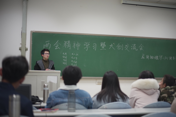 3月5日,太阳成集团tyc9728应用物理学团支部于下午七点在南堂402室开展了两会精神学习交流会暨大创交流会活动,教师凌翠翠及应用物理学团支部全体成员参加。