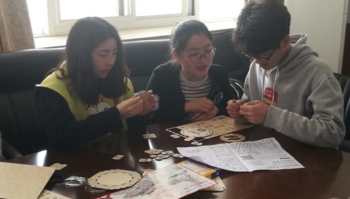 随后,刘宇佳随机将同学们分成4个小组,每个小组分发一套木质拼图,拼图块各有不同的编号,每种编号块对应楼阁的各层部分,要求小组成员共同完成。同学们分工合作,各司其职,从零散的拼图块到精美的成品,从打好坚实的底座到修砌“红墙绿瓦”再到悬挂殿前“祈年殿”牌匾,大盘作地基,小块拟瓦片,错杂拼接,终成殿台楼阁。其貌其型,微观上,精巧细致;宏观上,恢宏大气。其精细,取于精益之精神,以匠人之心,追求技艺之极致,亦不可浅尝辄止、半途而废;其恢宏,源自专注之态度,踏实严谨、心无旁骛,认真做好每一个细节,方能化腐朽为神奇,令平凡作非凡。最后,各组成员与成品进行合照,活动圆满结束,同学们脸上都洋溢着喜悦的笑容。