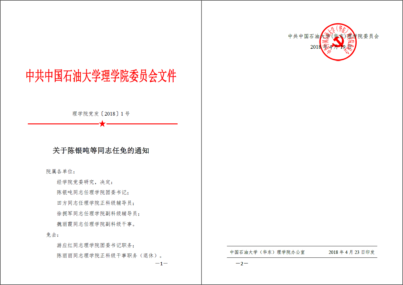 公司党发[2018]1号关于陈银吨等同志任职的通知