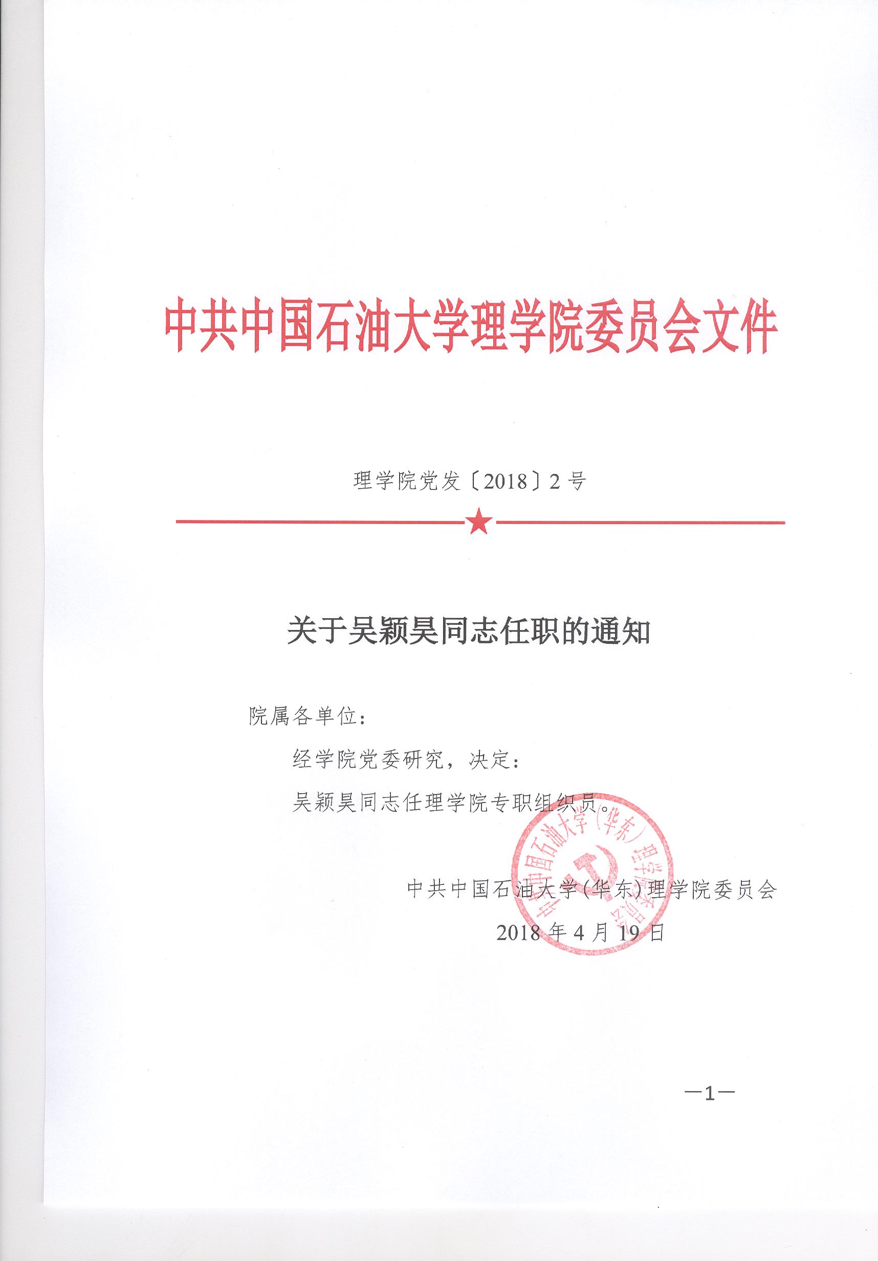 公司党发[2018]2号关于吴颖昊同志任职的通知