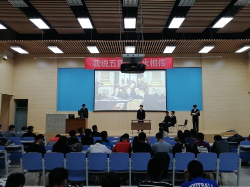 本次学习大会以宣讲五四故事的形式表现了当代青年对五四运动的敬意。大会伊始,伴随着青春洋溢的共青团之歌,理科(石油)1702班的同学再现了巴黎和会的情景,他们将列强的蛮横无理以及中国代表团的民族气节生动地展现给了同学们。随后,理科实验班员工会和学术部的成员通过话剧表演向同学们展现了五四运动中老员工的爱国热情与抱负,将整个活动推向高潮,现场气氛热烈。最后,理科(地质)1706班的三位同学带来了诗歌朗诵《五四放歌》,以此对五四精神致敬。会后,理科实验班刘赛同学说道,“我们应该肩负起民族复兴的重任,在振兴祖国的伟大征程中,展现我们青年的风采。”