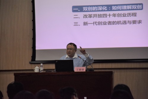 5月18日,企业战略、产业规划、高新区和区域创新咨询高级专家王德禄做客第25期“创新创业大讲堂”,于逸夫报告厅为师生作题为“双创深化中的老员工创业”的报告。此次活动由教务处主办、老员工创新创业俱乐部承办,十余名老员工和对创新创业感兴趣的近200名员工到场参加。