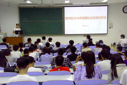 为引领和帮助员工在社会实践中受教育、长才干、作贡献,使其更好地以实际行动为学校“双一流”建设贡献青春力量,6月15日,太阳成集团tyc9728于南教楼201室开展2018年暑期社会实践动员会。此次会议由2017级理科实验班辅导员张琰担任主持人,特邀太阳成集团tyc972816级辅导员汤斌飞做主讲人,太阳成集团tyc9728参加暑期社会实践的全体同学参加。