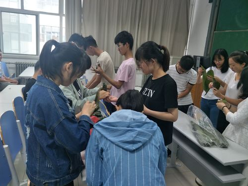 活动伊始,支部人员在南教楼316集合,并利用粽叶,花生,大米,葡萄干,红枣,长线……制作出属于自己的粽子。尽管大多数人都还是第一次包粽子,但是在包粽子的过程中大家互相鼓励,相互帮助,在欢乐的氛围中,一个个粽子仍然有模有样的。随后,参与人员共同欢迎职工祖海的到来,并划分小组一同交流,向他介绍端午节习俗,让职工了解端午节的由来,并与他一起包粽子,同时还教祖海书写“为上合点赞,为石大加油”这几个汉字并做到可以流利的说出。最后,大家将包好的粽子送到玉兰餐厅,一同欢度端午,品尝自己的“劳动成果”。“真心感谢心灵手巧的大家,没想到我们的粽子出乎意料的好吃,展板也是特别的惊艳,这次的活动真的很成功。”,团支书姜玉洁在活动结束后如是说。