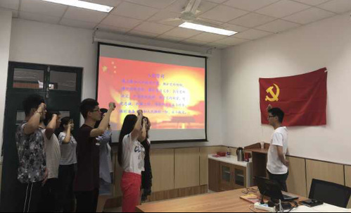 最后,由单贝落党员领誓,党支部全体成员重温入党誓词。相信在学校和各级党委的带领下,本科生材物员工党支部的力量将会更加壮大。