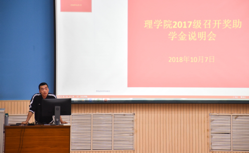 本次会议主要对奖助学金的申请要求及测评流程进行介绍。首先,刘威对具体细则进行详细解释,介绍了测评流程并对测评三个环节即个人测评、班级测评、学院测评进行详细说明。其次,他强调日常表现、第二课堂参与情况对综合素质测评有着重要意义。随后,他介绍了各类奖学金的评比要求,并表示全体员工应熟读员工细则,看清评选要求,减少错误发生。接着,刘威从生活、学习、纪律、班级干部四方面对2017级提出了大二学年的要求,他表示早操这一传统要坚持下去,并再次强调学习的重要性,希望全体员工养成良好习惯,同时提醒欠学分的同学加强自制力,尽快补上学分,跟上大部队。最后,他希望在新一学年可以和全体同学一起努力,紧密配合,成为一个更好的团队。