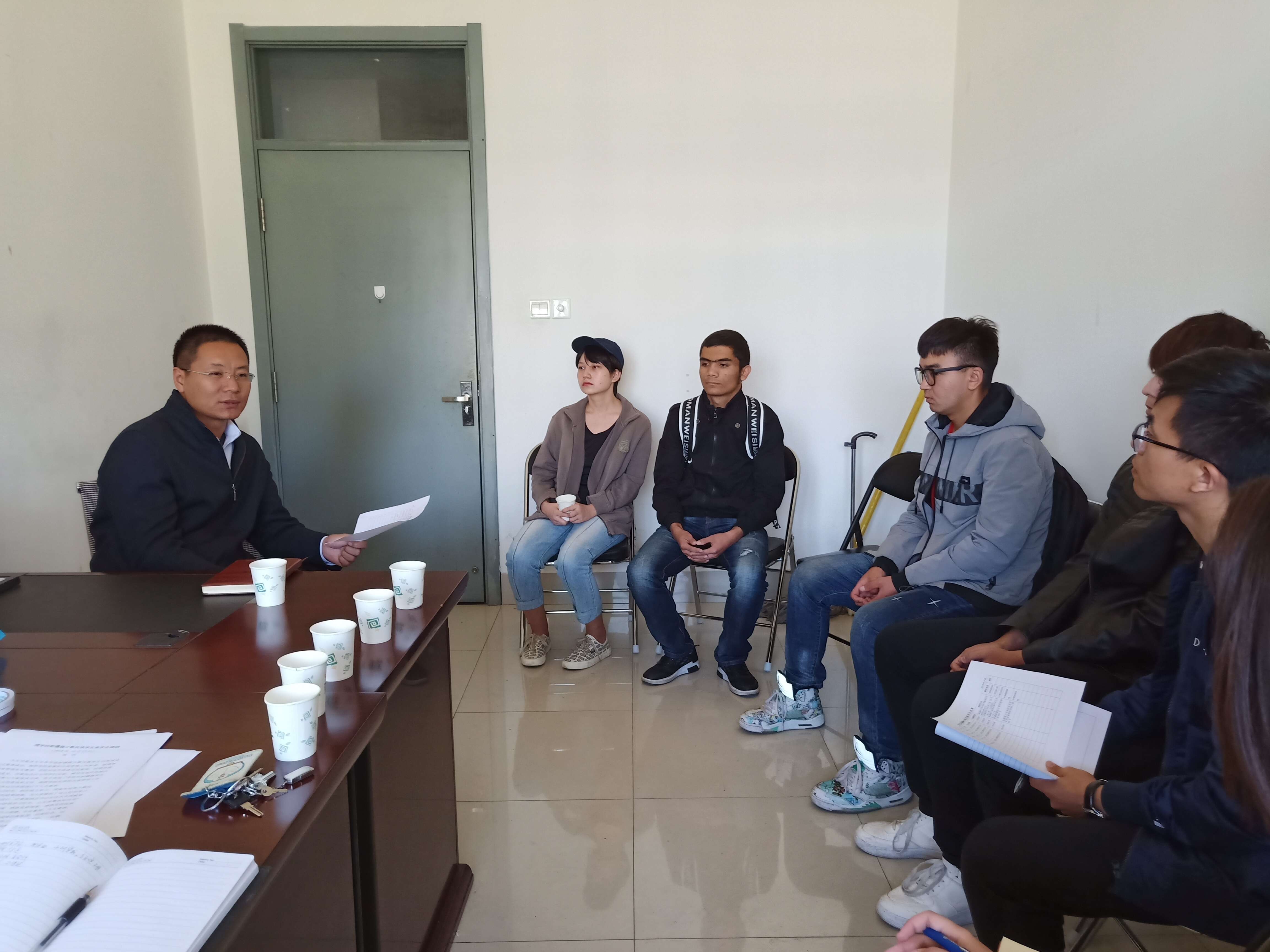 辅导员帕孜莱提和薛瑞琪结合辅导员工作实践与员工进行交流,建议新生尽快调整生活作息习惯,快速融入到其他同学当中去;多跟其他同学交流,踊跃参加校内的各类社团活动;在学习专业知识的同时注意培养自己的综合素质,做到全方面发展。