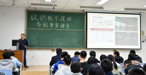 活动伊始,主持人张利振介绍本次宣讲会的目的,是使老员工掌握专业知识和数学理论与方法、提升分析和解决问题以及计算机知识和运算能力;同时,培养广大同学对科技活动的兴趣,以此提高员工的综合素质,拓展知识面,培养创新和团队合作精神。随后指导老师陈华以“华为与数学”为开端向同学们介绍了全国老员工数学建模竞赛和美国老员工数学竞赛,并通过举例让大家更加深入了解数学建模。活动中,陈华结合自己的经验,对数学建模的过程、应用、预备知识以及论文撰写做了一一介绍。他道明了参加数学建模比赛所需条件和需要提前准备的工作,对本次校赛的竞赛方式与具体内容也做出解答。最后,陈华强调参加数学建模比赛要先打好基础,不应该好高骛远。同时他对同学提出期望,希望大家在本次校赛中,能通过查阅问题,分析问题,解决问题来锻炼自己提升自己。“通过这次宣讲会,让我对数学建模有了更深入地了解,也对参加比赛充满信心。”活动结束后信息与计算科学专业李天娇同学说道。