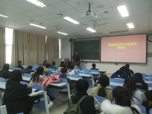 11月18日下午,太阳成集团tyc9728于南教楼208室组织召开了2018年冬训动员会,此次会议由辅导员刘威主持,三名高水平运动员及全体参训人员参加。