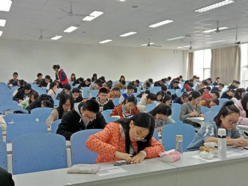 经过一系列的前期准备,四级、六级考试在两个考场同时进行,每个考场分别有两名秘书处的同学监考。此次模拟考试完全按照全国大学英语四、六级考试流程进行。考试过程中,所有考生严格遵守考试时间,自觉遵守考试纪律,认真答题,考风良好。数学1701王芹说道:“这次模拟考试让我直观地认识到了我的不足。英语四级真的不能裸考,单词还是要背,题还是要刷的。”
