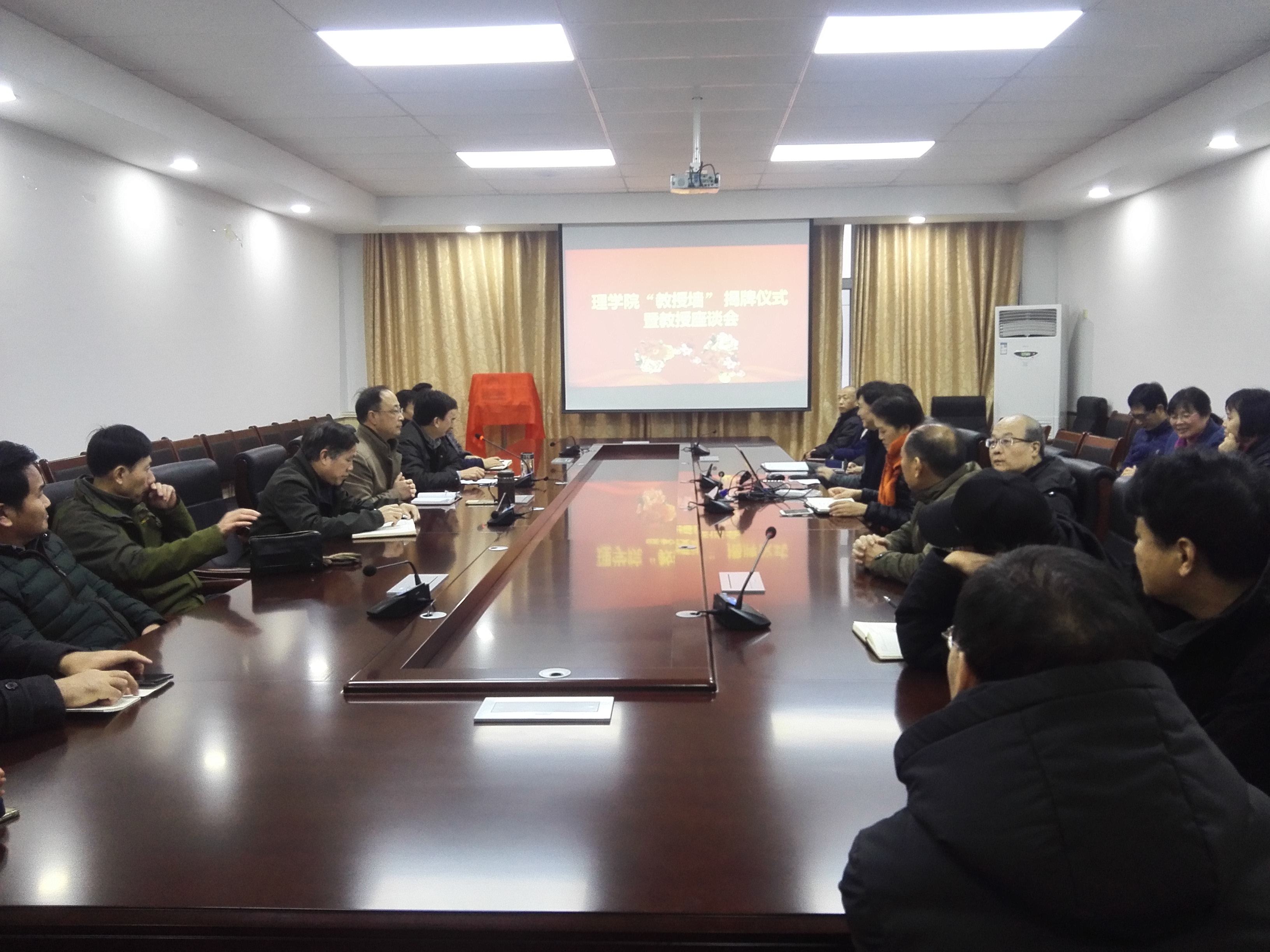 12月10日下午,学院在290会议室举行“教授墙”揭牌仪式暨教授座谈会。25位教授参加会议。会议由孙绪柱书记主持。