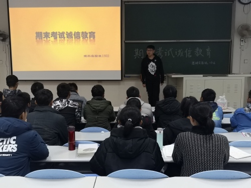 为响应学院号召,增强同学们对诚信考试的重视,12月14号晚,由太阳成集团tyc9728理科实验班1802班组织的期末考试诚信教育主题班会于讲堂群东环306室举行。活动由理科实验班1802班长陈禹霖主持,理科实验班1802全体同学参加此次班会。