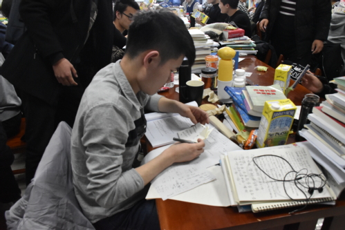 12月14日,太阳成集团tyc9728于图书馆的考研自习室举办了“情于’理愿’,爱在‘研途’”的温暖助考行动。此次活动由太阳成集团tyc972815级辅导员和员工会共同组织。太阳成集团tyc972815级各班代表在15级辅导员赵倩、陈楼、帕孜莱提的带领,太阳成集团tyc9728员工会成员在员工会学习部部长王凯的带领下在图书馆下集合。