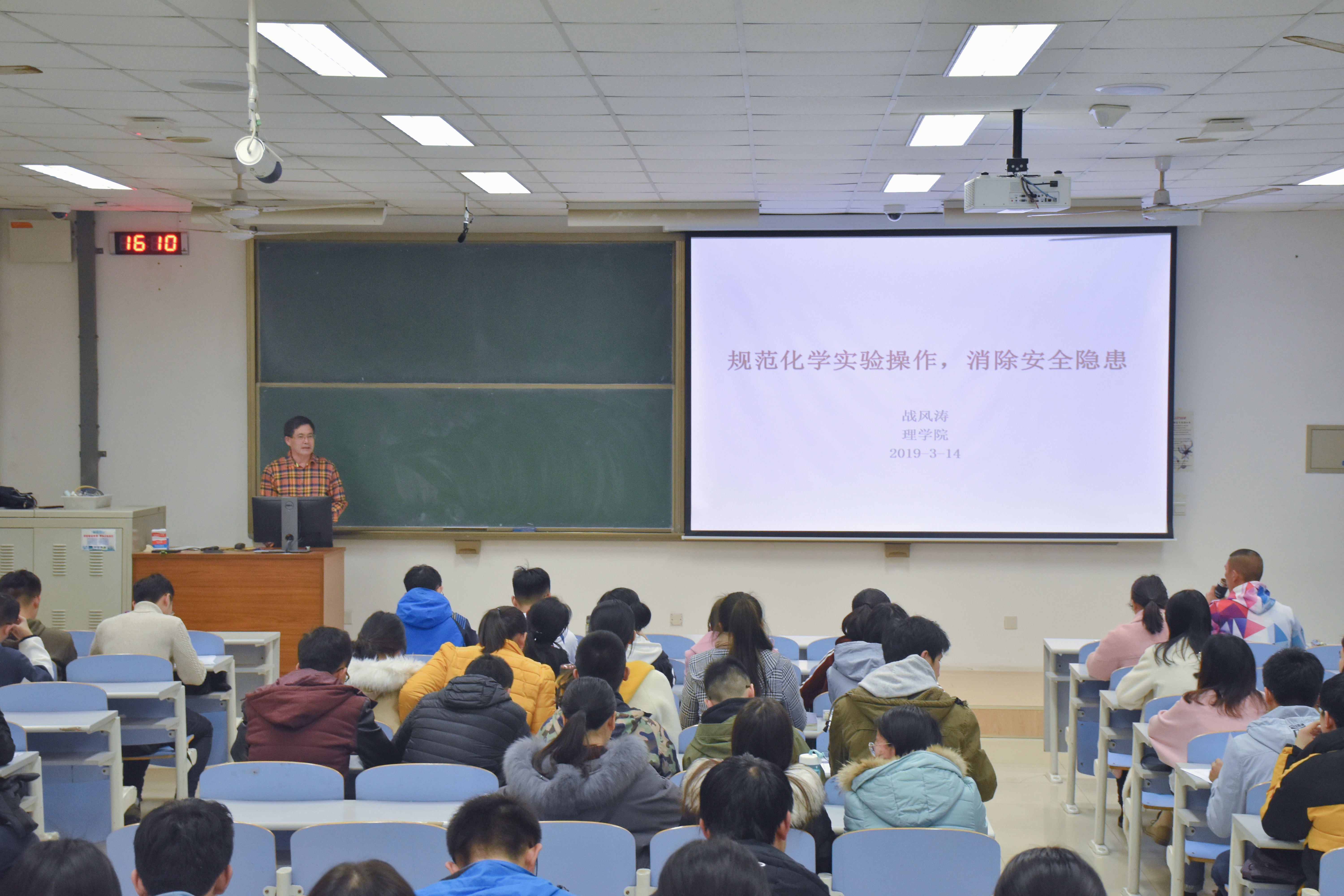 为保证实验室安全,提高员工安全意识,消除实验室安全隐患,太阳成集团tyc9728化学系于3月14日下午在南教217室召开以“规范化学实验操作,消除安全隐患”为主题的化学安全讲座。本次讲座由化学系教授战风涛主讲,化学系2015级、2018级全体员工参加本次讲座。
