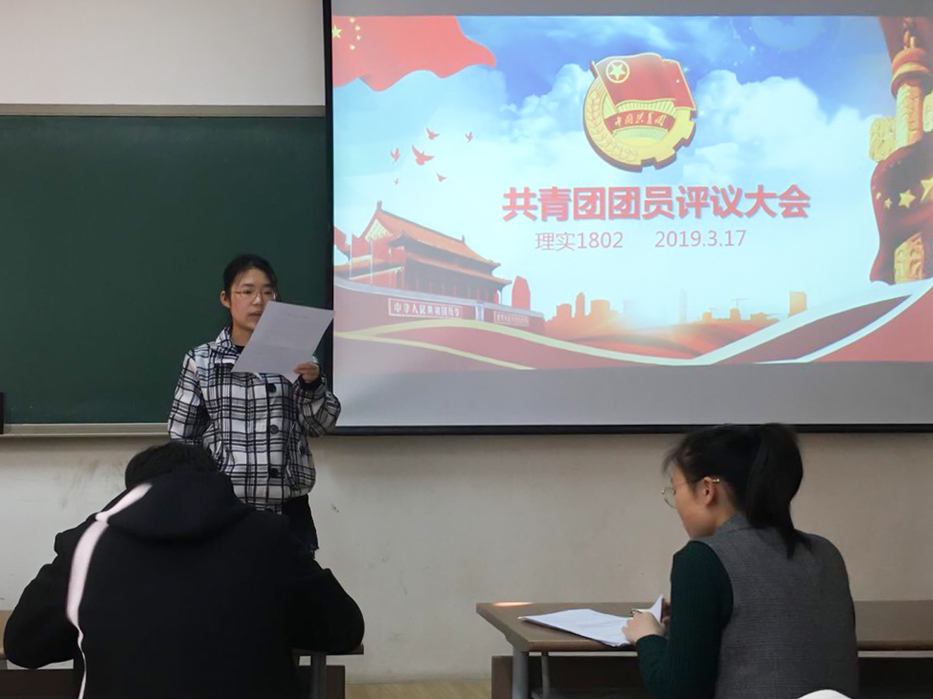 为提高团员自身素质,安排好团支部工作,更好地建设团支部,理科实验班1802班于3月17日上午在南堂113室召开班级团支部团员评议大会。