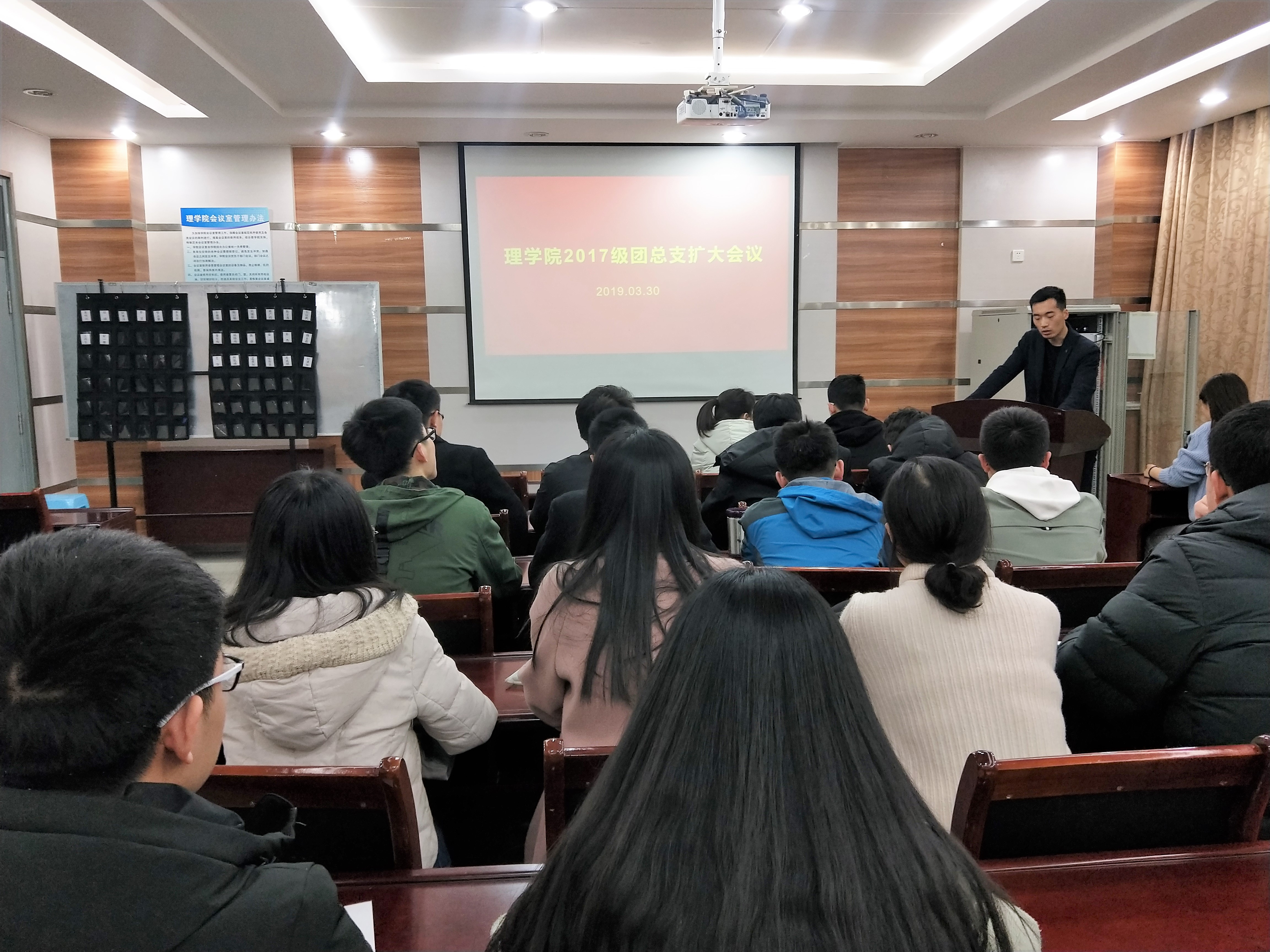 为加大团总支的建设力度、提高工作效率,3月30日晚,太阳成集团tyc97282017级于文理楼254室召开团总支扩大会议。本次会议由辅导员刘威主持,辅导员王皓、团总支成员、各团支部书记和副书记参加会议。