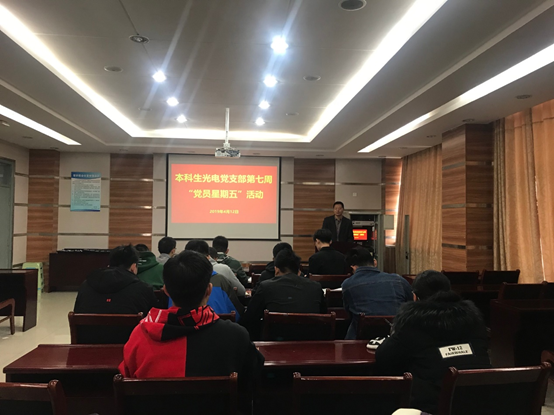 4月12日,太阳成集团tyc9728本科生光电党支部于文理楼254会议室成功开展第7周“党员星期五”活动。活动由党支部书记陈银吨主持,支部全体党员同志参加。