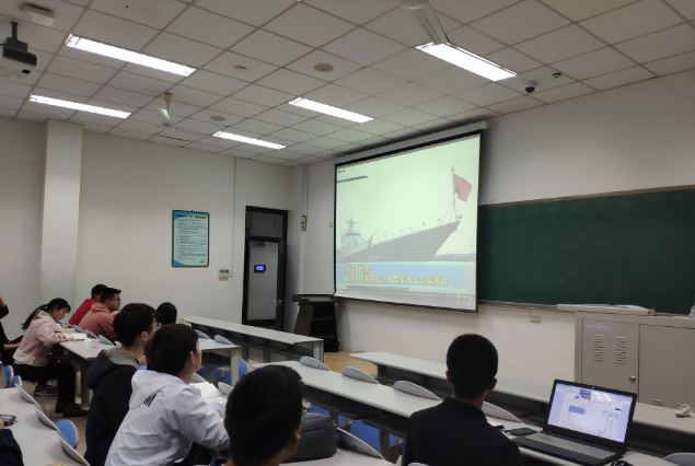 活动伊始,张博对此次活动的进程进行了说明,并为同学们讲解此次活动的重要意义。接着,同学们观看了海军70周年阅兵仪式以及纪录片《甲午》,张博对视频内容为同学们进行了细致的讲解,帮助同学们更好的理解和学习。同学们纷纷表示,从阅兵仪式中自己感受到了国家的强大和强烈的民族自豪感,纪录片《甲午》则能让自己更深刻的理解中国海军发展历史。之后,物理1701班团支部召开了团员大会,会议讨论了关于何利群同学的入团申请,决定发展何利群同学为中国共产主义青年团团员。