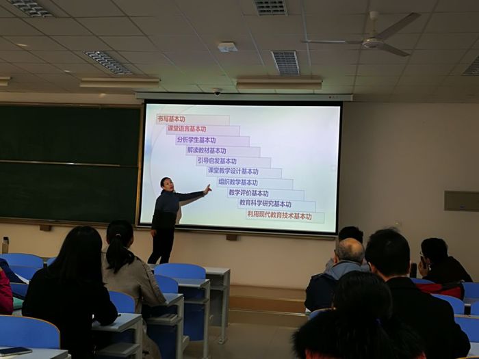 首先,吕炜副教授为老师们做了题为《如何练好教学基本功》的报告。吕老师结合自身多年的教学实践,阐述了教学基本功的十个方面:书写基本功、课堂语言基本功、分析员工基本功、解读教材基本功、引导启发基本功、课堂教学设计基本功、组织教学基本功、教学评价基本功、教育科学研究基本功、利用现代教育技术基本功。进一步地,就书写基本功、课堂语言基本功,吕老师做了更详细的分析和解读,就徒手绘图绘画、正确书写粉笔字等给老师们做了示范,吕老师严谨的教学态度、丰富的肢体语言、富有感染力的讲解给老师们留下了深刻的印象。很多老师纷纷在会上发表了自己的看法,表示今后要加强基本功的训练。