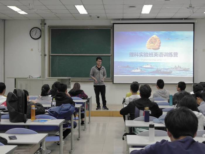 正值中国人民解放军海军成立70周年,青岛见证国际舰队检阅,为向营员宣传军事方面的知识与文化,加强营员对各国海军知识的了解,5月5日,英语训练营特于南堂322举办了“各国海军知识交流会”。营内全体成员参与此次活动。