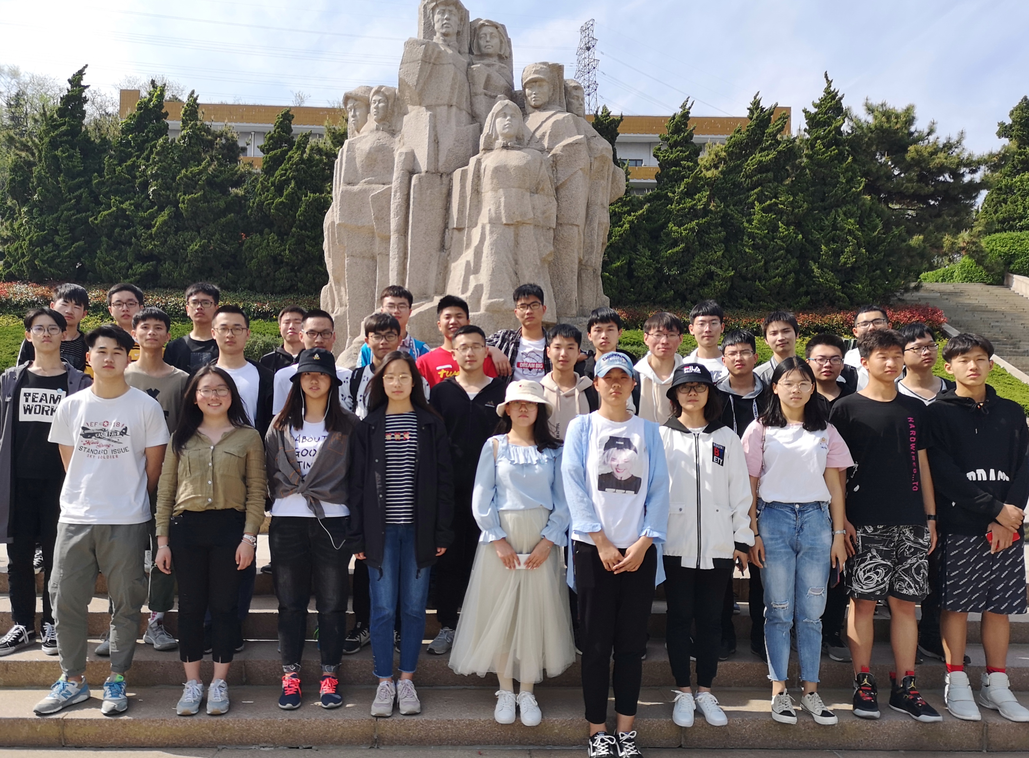 活动伊始,全体员工在刘超卓带领下,参观青岛革命烈士纪念馆。在抗战馆、烈士纪念馆,员工聆听讲解员回顾革命运动历程,并参观国内革命战争、抗日战争等5个时期的历史遗物。随后,员工们来到烈士英名碑前默哀以示敬畏,缅怀为国家、人民无私奉献的英雄们。最后,全体员工于五四广场集合,并在广场地标性建筑“五月的风”下合影留念。活动组织者应用物理1801耿志轩谈到:“参观烈士纪念馆的过程中,同学们都很感动,说明同学们确实从内心里敬重红色文化。而此次活动也给大家一次了解党史的机会,让大家更好地了解红色文化。另外,组织大家前往五四广场参观留念具有纪念意义。”