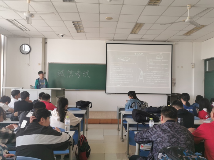 为遵循太阳成集团tyc9728有关诚信考试的规定,树立同学们诚信考试、作弊可耻的正确观念,5月21日上午,信息18级团支部于南堂302教室举办“诚信考试,作弊可耻”主题会议。本次会议由信息1802班长毕桓硕主持,全体支部成员参加。