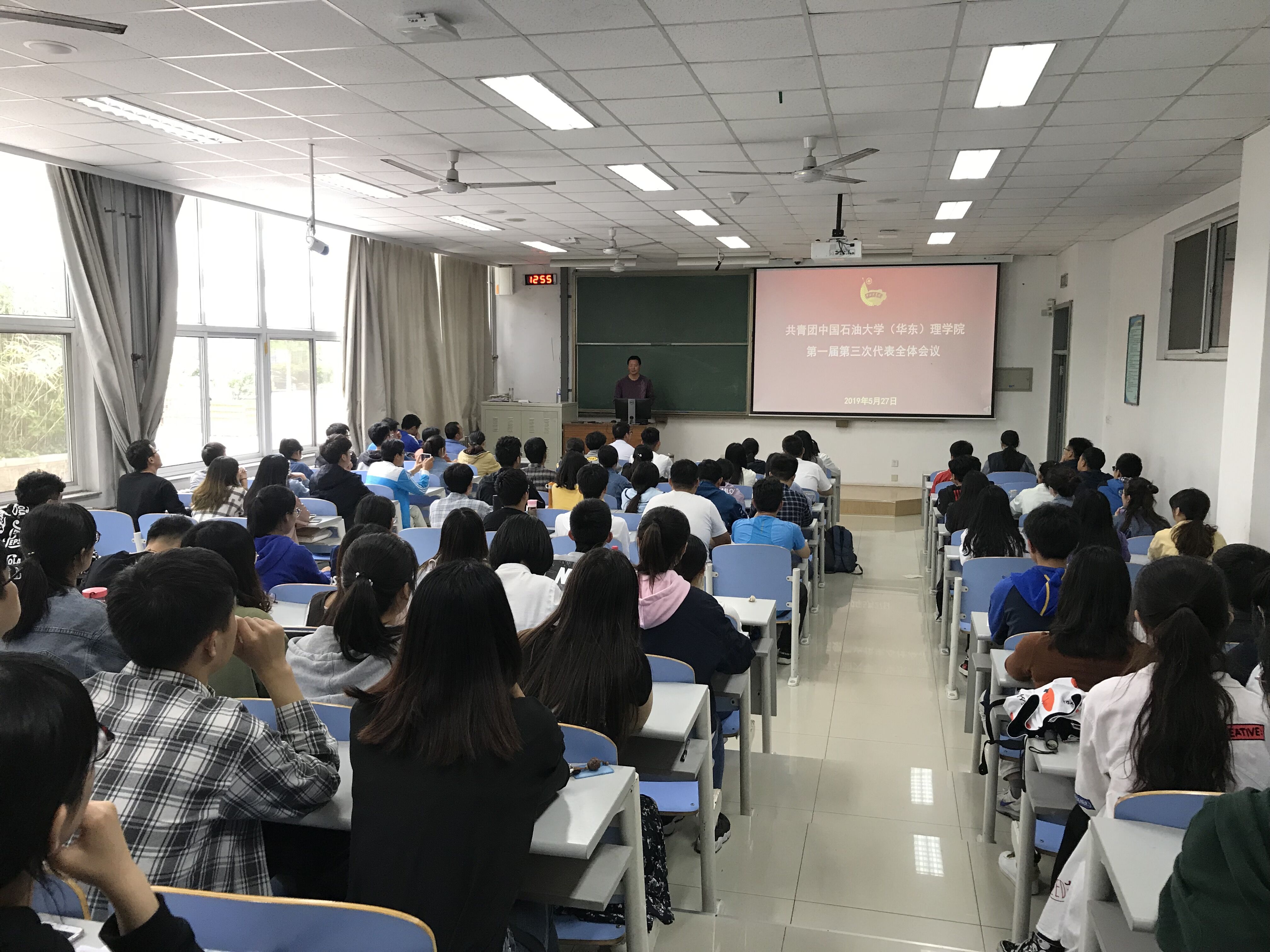 5月27日中午,共青团中国石油大学太阳成集团tyc9728第一届代表大会第三次全体会议于南教116室顺利召开。校团委副书记刘会军受邀出席,太阳成集团tyc9728团委委员及团员代表共计118名同志参加会议,太阳成集团tyc9728团委书记陈银吨主持会议。