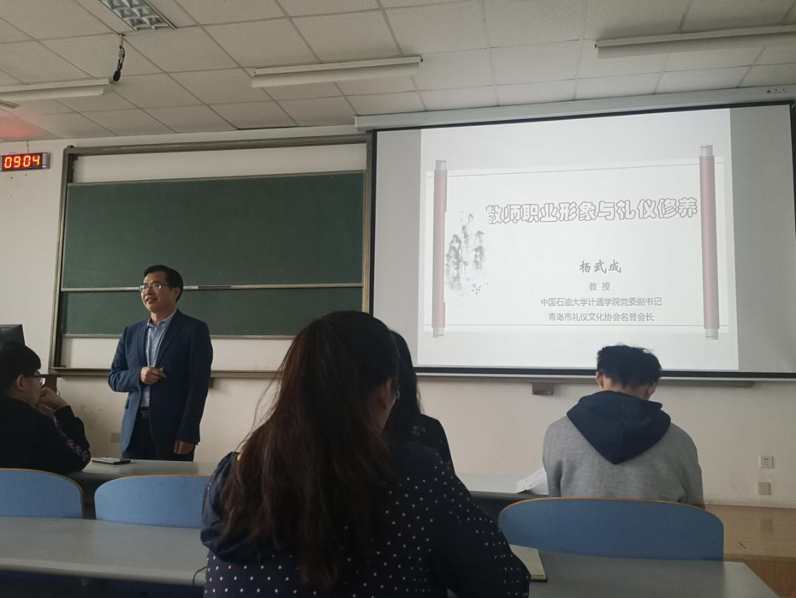 5月30日上午,太阳成集团tyc9728助教训练营第四次课程于南教315室顺利进行。本次课程以讲座形式开展,由太阳成集团tyc97282018级兼职辅导员王辉主持。中国石油大学教授、计算机与通信工程公司党委副书记、青岛市礼仪文化协会名誉会长杨武成讲解本次课程内容,旨在让全体助教明确自身责任,以一个更好状态,帮助老师、服务同学。太阳成集团tyc9728全体助教参加本次课程。