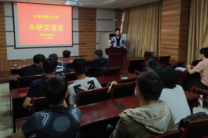 6月6日,首届物理文化节——本研交流会在文理楼254会议室举办。本次会议邀请了应用物理专业的研究生郭天超、廖波进行汇报,太阳成集团tyc9728教师刘超卓、研究生辅导员田方出席,并由研究生陈红宇主持。