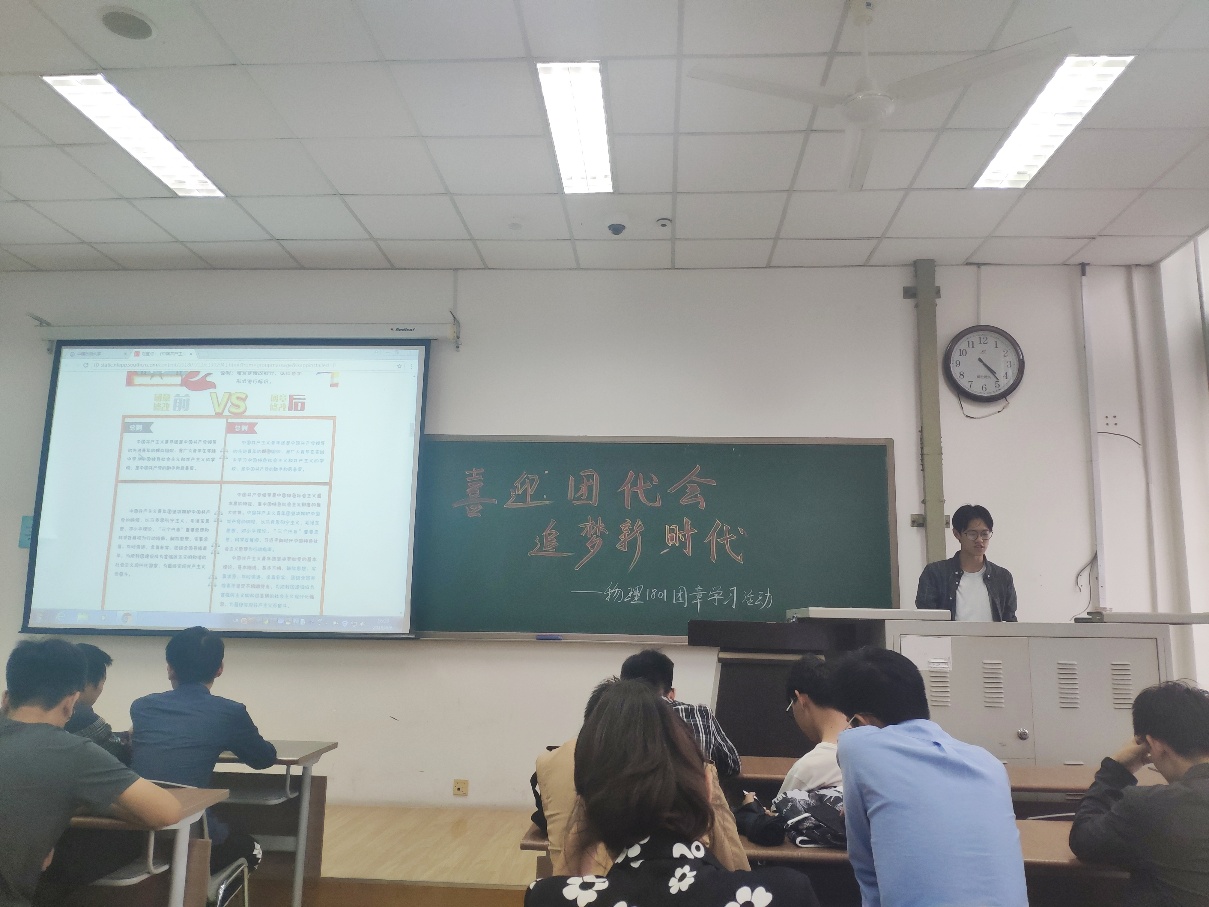 在共青团太阳成集团第十六次代表大会期间,为营造良好的思想氛围,让全体团员积极参与到共青团的建设工作上去,应用物理1801团支部于6月6日下午在南堂414室举行以“喜迎团代会,追梦新时代”为主题学习团章的团日活动。本次活动由应用物理1801班团支书耿志轩主持,应用物理1801班全体员工参加。