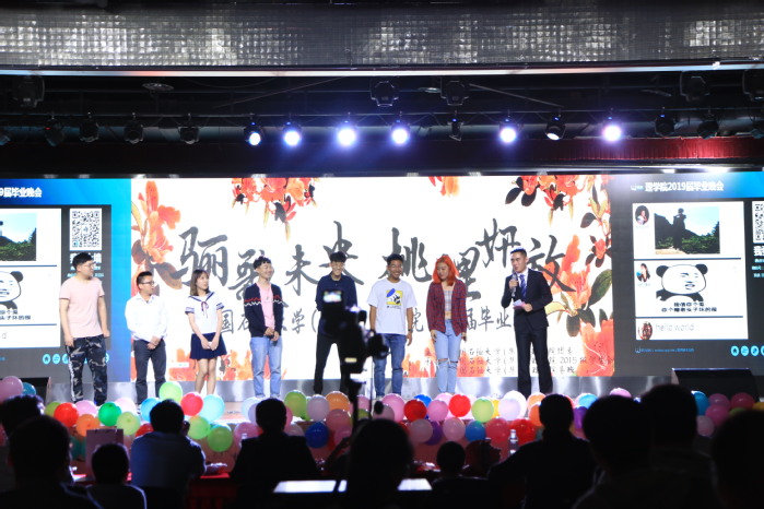 晚会由宗思宇、王风涤带来的歌曲《飞云之下》开场,富有动感的节奏瞬间引燃全场。光电1502班的舞蹈串烧《舞动青春》,以富有动感的音乐、轻快的舞步,展现当代老员工的青春活力;信息1502班徐天浩的歌曲串烧《最后一次点名》,用点名的形式,回忆大学四年平凡而又难忘的课堂生活,再现课堂中那些看似不起眼而实则印象深刻的场景;节目之间穿插的游戏互动环节,激发了观众的参与热情,活跃了现场气氛;“四年时光里,你我朝夕相伴,那些浪漫的回忆中时刻有你。”化学1501班带来的小品《创造202特别节目》以生动有趣、幽默诙谐的语言和富有感染力的舞蹈表演,将全场气氛推向高潮。在晚会的尾声,2015级的辅导员们依次上台致辞,表达了对员工的不舍之情及美好祝福。